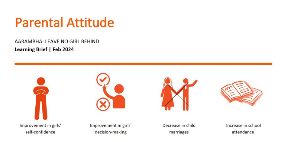 Aarambha aims to enhance the life chances of targeted marginalized girls by providing basic literacy, numeracy, and life skills sessions in non-formal education (NFE) settings specifically through accessible Community Learning Centers (CLCs). Under the project, 462 CLCs were conducted in 21 palikas of Bara and Rautahat, and upon successful completion of accelerated learning courses at these centers, graduates were either able to transition into formal schooling in 1st to 9th Grades or get upskilled through market-needed technical/vocational skills with the necessary equipment. Both learning and employability interventions have been successful in addressing early marriage and breaking down harmful social norms. Project cycle data shows that 9,497 OOS girls have been educated on literacy and numeracy skills under the project, with 4,896 successfully transitioning to school and 2,347 to technical and vocational education and training (TEVT). The project has also consistently tracked the learning progress of girls through assessments in both formal education and TVET pathways to ensure positive returns.